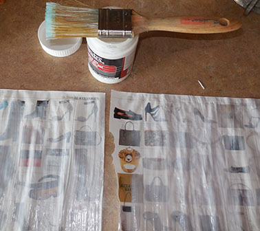 Back to the drawing board, I acquired a jar of matte gel and applied 2 coats to the magazine pages. With the first coat, I brushed top to bottom, and in the second coat I brushed side to side. The thicker layer held up better when removing the paper, but it also made the images less clear.