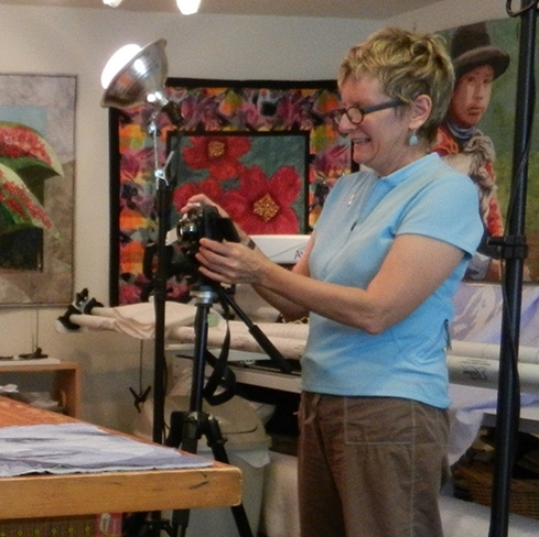 Here is Kim with her Donny quilt. Some think it looks like she printed the image, but NO. This is a fused appliqué portrait. Want to learn to make your own? Take my online portrait quilt class.